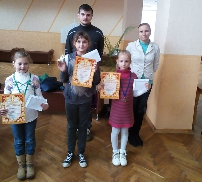 Среди начинающих борьба была острее и к финишу с одинаковым результатом 6 очков пришли четверо, и в этом случае дополнительные показатели распределили призеров. Итак, Забельский Александр – первый, Бель Кирилл – второй, Болондзь Ян – третий, немного не повезло Демьяновичу Михаилу. Среди девочек первое место и норму четвертого разряда завоевала Медушевская Мария, немного не хватило до нормы (пол-очка) следующим призерам среди девочек Юхно Насте (второе место) и Малюш Алисе (третье место).