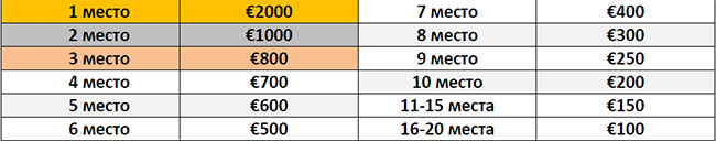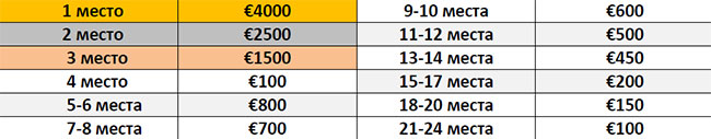 Главные призы: €8,000