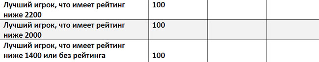 5. Лучший рейтинговый игрок (начиная с низкого рейтинга).