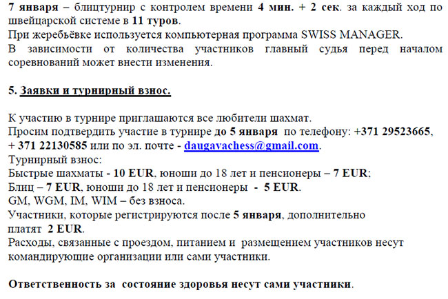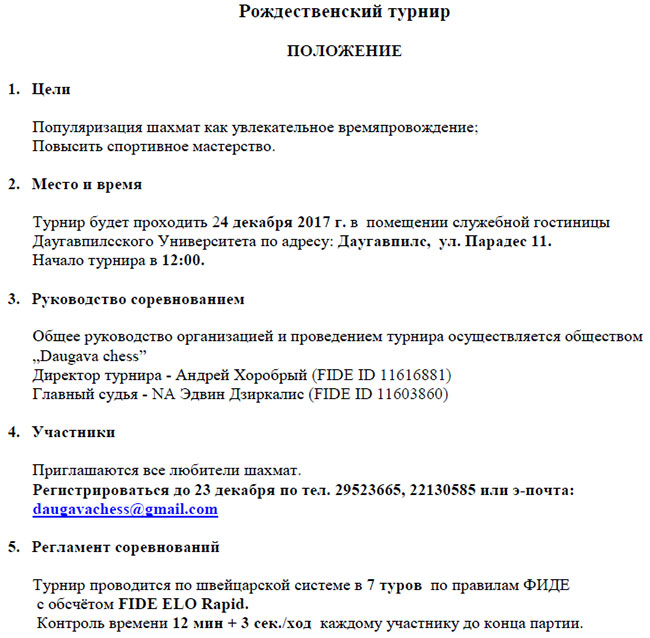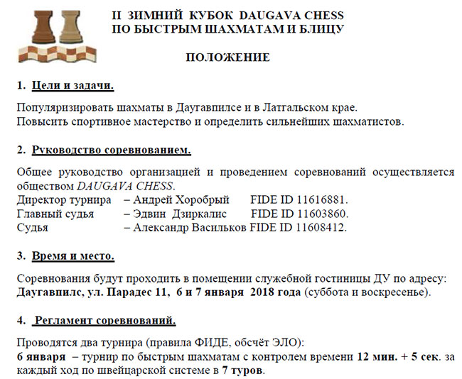 Наши шахматные латвийские друзья приглашают на Рождественский шахматный турнир 24 декабря и 6-7 января на Зимний Кубок Daugava chess, которые пройдут в Даугавпилсе.