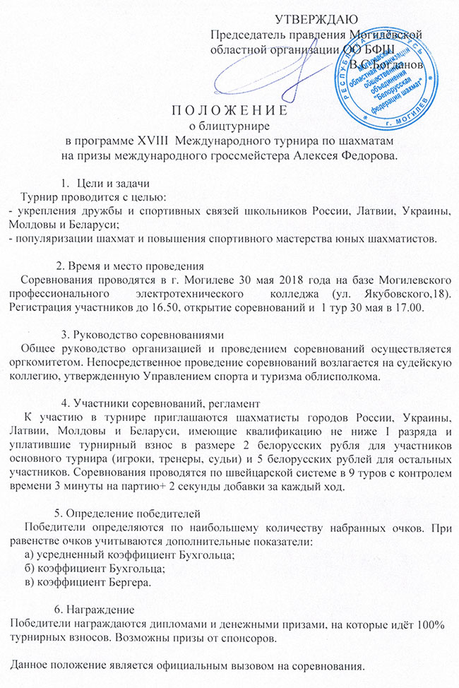 30 мая в рамках XVIII Международного турнира по шахматам на призы мг Алексея Федорова пройдет блиц-турнир.