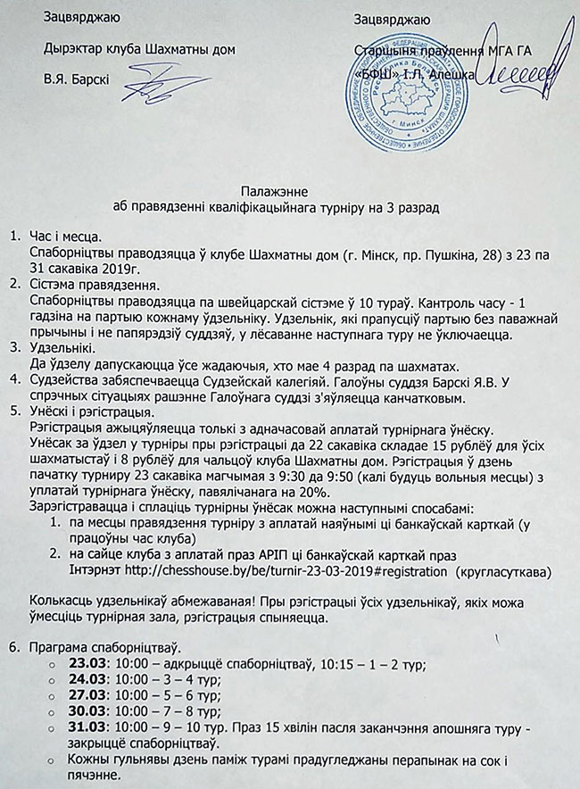 З 23 па 31 сакавіка ў клубе “Шахматны дом” (г.Мінск, пр.Пушкіна, 28) пройдзе кваліфікацыйны турнір на 3 разрад.