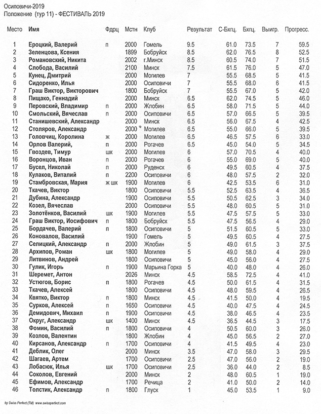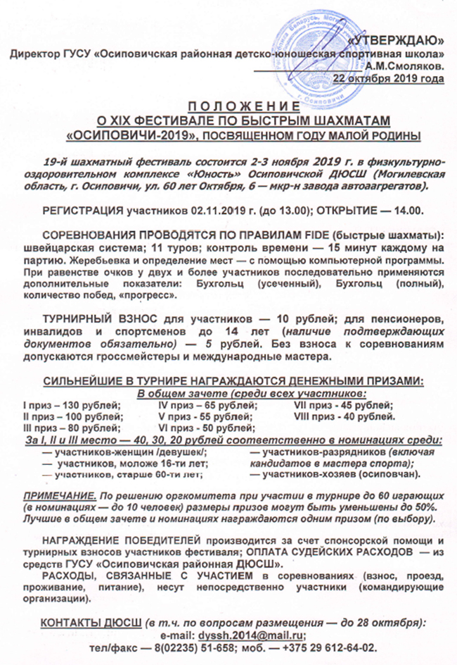 3 ноября в физкультурно-оздоровительном комплексе "Юность" завершился XIX фестиваль по быстрым шахматам "Осиповичи-2019".