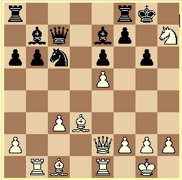 1.e4 c5 2.c3 Nf6 3.e5 Nd5 4.Nf3 Nc6 5.Bc4 e6 6.d4 cxd4 7.cxd4 d6 8.Qe2 Be7 9.0-0 a6 10.Nc3 Nxc3 11.bxc3 dxe5 12.dxe5 Qc7 13.Bd3 0-0 14.Re1 b6 15.Rb1 Bb7 16.Ng5 g6 17.Nxh7!