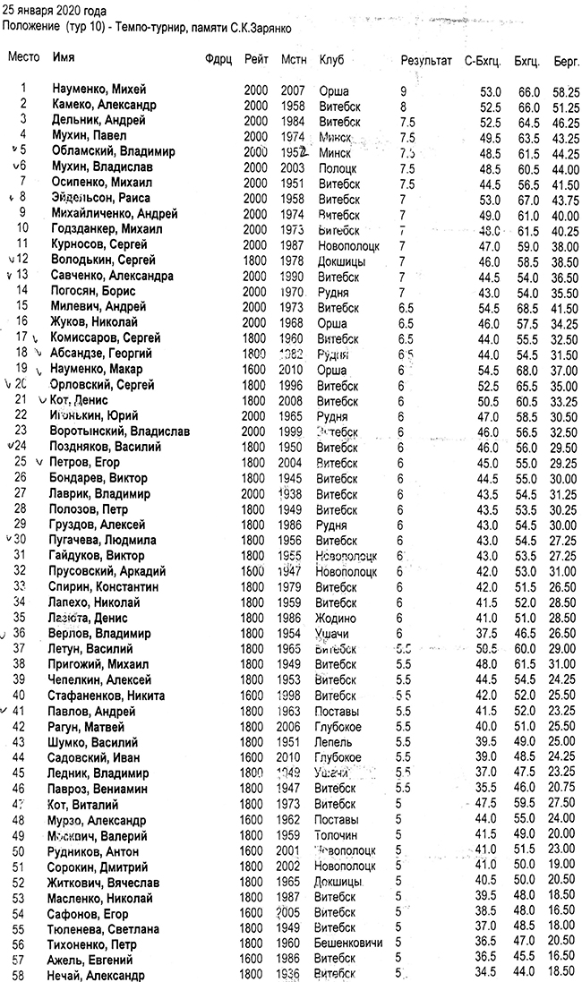 Витебский областной открытый шахматный турнир, посвященный С.K.Зарянко.