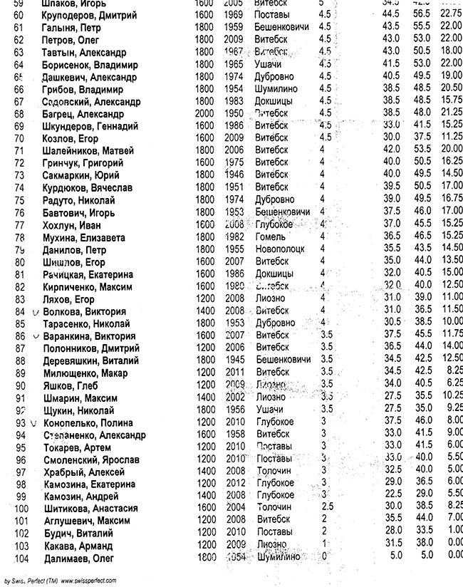 Темпо-турнир прошел с участием 104 шахматистов из городов: Витебск, Гомель, Жодино, Минск, Полоцк, Новополоцк, Орша, Рудня (Смоленская область), а также из райцентров: Бешенковичи, Глубокое, Докшицы, Дубровно, Лепель, Лиозно, Поставы, Толочин, Ушачи, Шумилино.