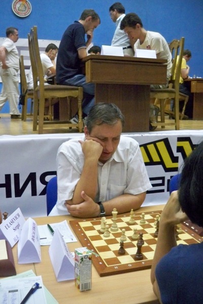 Однако А. Халифман не даром становился Чемпионом Мира, он абсолютно правильно оценил ситуацию: не так просто обыграть Юрия Тихонова черными, куда надежнее закончить партию миром, тем более, что конкурентам достались в соперники братья Жигалко, которые "танком проехались" по ближайшим преследователям в предыдущих турах.