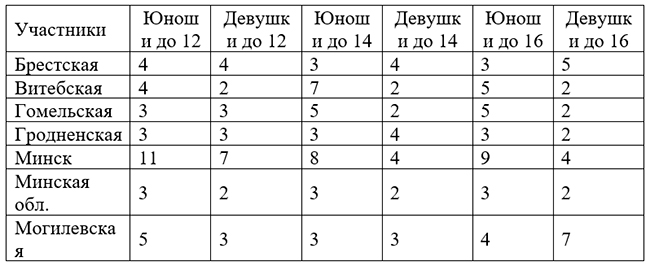 4) входящие в квоты областей и г. Минска для участия в Первенствах страны соответствующих возрастов