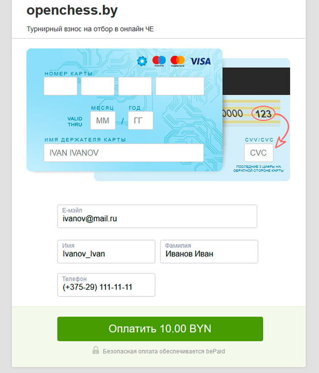 Оплата производится через сервис bePaid. Более подробно о данном способе оплаты можно ознакомиться здесь.