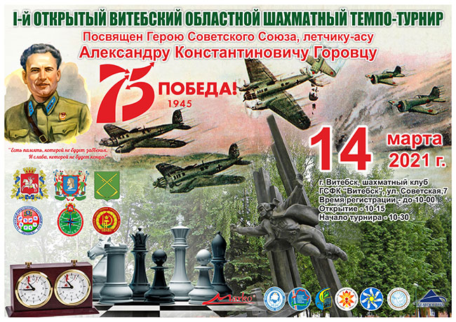 - Заявка на участие в I-ом Витебском открытом шахматном темпо-турнире направляется иногородними участниками до 05.03.21 г., включительно (общим списком от района, города на всех шахматистов) в Витебский областной совет ветеранов БООВ по адресу: 210010, г. Витебск, ул. Правды 18, каб. 20). Тел/факс: (8-0212) 63-68-67. По электронной почте (email) заявку в оргкомитет можно передать через районные, городские организации ветеранов БООВ.
