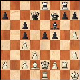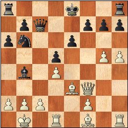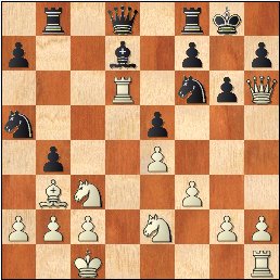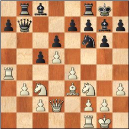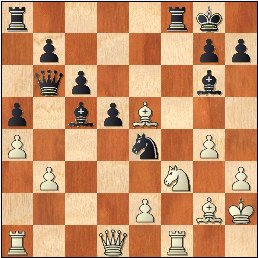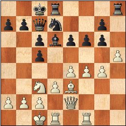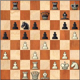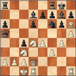 ef с небезвыгодными для черных разменами. 18.f5 g5. Королевский фланг закупорен, а в центре некоторое преобладание черных за счет полуоткрытой линии "d". 19.Nb1 Rhe8 20.Nd2 Bf8 21.Nf3 Nb6 22.Kb1 Qe7 23.c3 Rd7 24.Bg1 Na8 25.Rfe1 Nc7 26.Qc2 Red8 27.Bh2 Qe8 28.Rd2 Nb5 29.Red1 Bd6 30.Qa4 Kb8 31.Qc4 b6 32.a4 Nc7 33.Re2 Kb7 34.Rc1 Re7 35.Qb3 Na6 36.Nd2 Bc7 37.Re3 Red7 38.Qc2