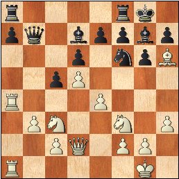 В острой борьбе белые выиграли пешку, но приключения в этой партии только начинаются. 21.Rf1?! (21.Re1!) 21