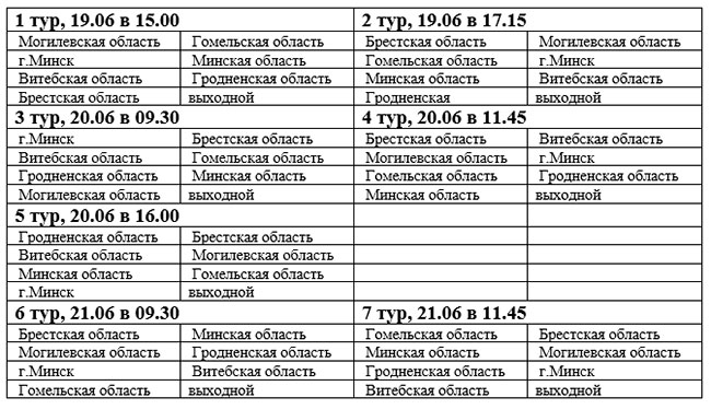 Соревнования проводятся с 19 по 21 июня 2021 года на базе УО «Брестский государственный областной центр молодежного творчества» (г. Брест, ул. Московская, 123, спорт. зал №344), по круговой системе в 7 туров при участии 7 команд. Состав команды: 6 спортсменов (4 юноши и 2 девушки) 2006 г. р. и моложе и 1 тренер-представитель.