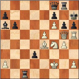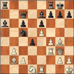 Qb8 35.Ne3 Rxa3 36.R1d6 Ra1. Причем здесь у белых находилась красивая ничья — 37.Nf5+ gxf5 38.Qh6+ Kxh6 39.Rxf6+ Kh7 40.Rfxf7+с вечным шахом. 35.Ne3 Rxa3 36.R1d6 Ra1 37.Qd2 Qb6 Финальную комбинацию экс-белорус находит легко. 38.Rxf6! Kxf6 39.Nf5! Мат неизбежен. 1-0.