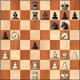 и эту позицию гораздо приятнее играть черными. А в партии черные быстро проиграли: 26.Bf2 h4 27.g3 Nh5 28.Ng4 Ng5+ 29.Kg2 Qxf4 30.Rxe8+ Rxe8 31.gxf4 Nxf4+ 32.Kf1 Nxd3 33.Nf6+ Kf8 34.Nxe8 Nxb2 35.Nxd6 h3 36.Bxc5 Nf3 37.Kf2 Nxh2 38.Kg3 Nf1+ 39.Kxh3 Kg8 40.Ne4 1-0