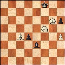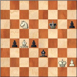 Ke8 84.Nxe3 dxe3 85.Kxh6 Kf8 86.Kh7 с победой. 84.Kxh6 Bxh4 85.Nxh4 d3 86.Bxd3 Kf7. М-да. Почему-то соперники не верят, что в детстве наши шахматисты изучали матование слоном и конем. 87.Kg5 Ke6 88.Nf3 Kd5 89.Kf5 Kc5 90.Ke5 Kb4 91.Kd4 Kb3 92.Ne5 Kb2 93.Kc4 Ka3 94.Kc3 Ka2 95.Nc4 Ka1 96.Nd2 Ka2 97.Nb3 Ka3 98.Bb1 Ka4 99.Nd4 Ka5 100.Be4 Kb6 101.Ne6 Ka5 102.Bc6 "Случайно" искомая расстановка получена! 1-0.