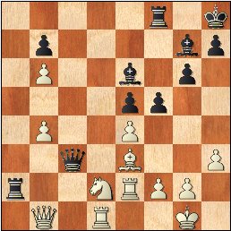 Qf6! Белые фигуры оказывались в клубке, который трудно было бы распутать. Ферзь брал на прицел пешки с3 и f4 и не давал королю уйти на f3 из-за Nе5+. После примерного 23.Rb7 Nb6 24.Rg1 Na4 25.Be1 Qxf4 26.g4 у черных оставалась сильная атака при равном материале. 23.Kf3 Ne4 24.Nxe3 Qf6 25.Re1 h5? Окончательно губит партию И снова надо было активизировать ферзя! 25