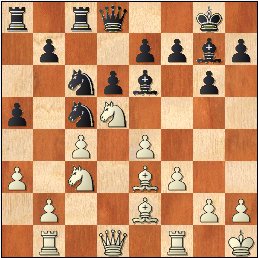 17.b4!? Переводит партию в иррациональную плоскость. Серьезный перевес у белых после 17.exf5 Bxf5 18.Nd5 Qd8 19.Nxf5 gxf5 20.b4 Ne6 21.f4 Nc6. Очень уж неуклюже стоят черные фигуры. 17