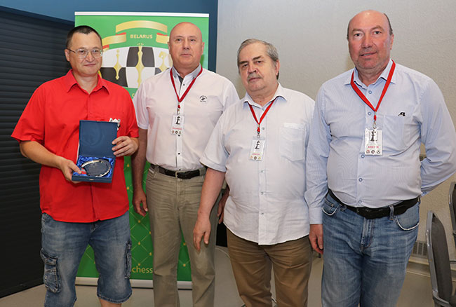 5 августа у нашего прославленного могилевского гроссмейстера Алексея Федорова юбилей! Перед началом 3 тура с 50-летием Алексея поздравил директор столичного РЦОПа Сергей Корчинский и вручил от имени ОО "Белорусская федерация шахмат памятный сувенир.