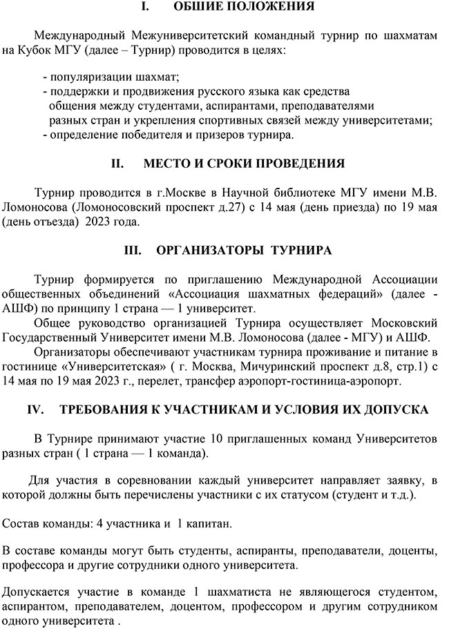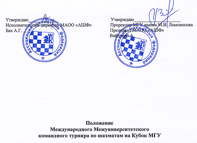 15 мая в Научной библиотеке МГУ г.Москвы стартовал очередной международный межуниверситетский командный турнир по шахматам на Кубок МГУ. По приглашению исполнительного директора Ассоциации шахматных федераций А.Г.Баха в соревнованиях принимает участие и команда Белорусского государственного университета физической культуры в составе: