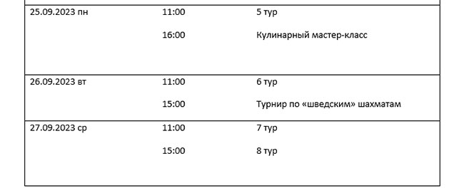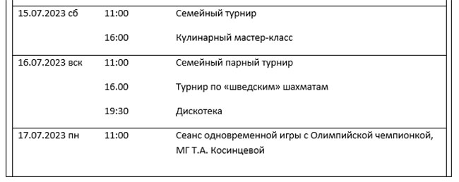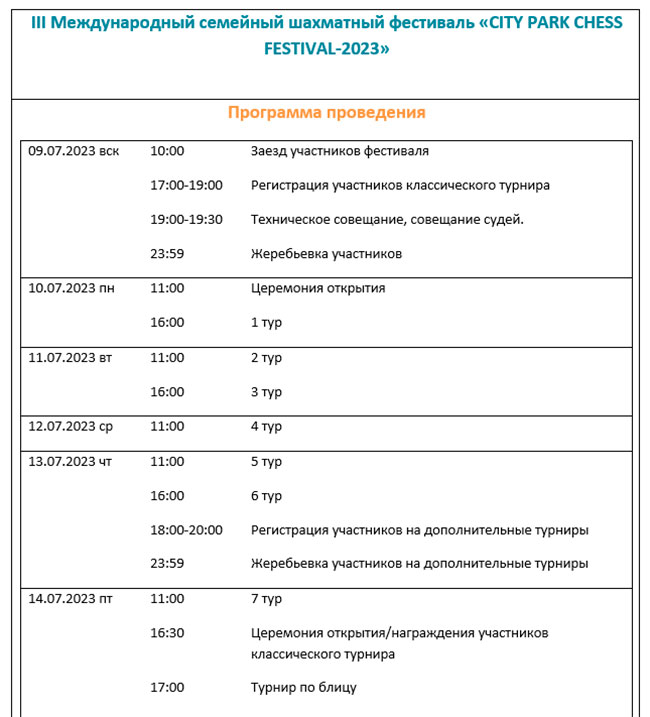 − 11–14 человек – швейцарская система в 7 туров (расписание будет доведено на техническом совещании);