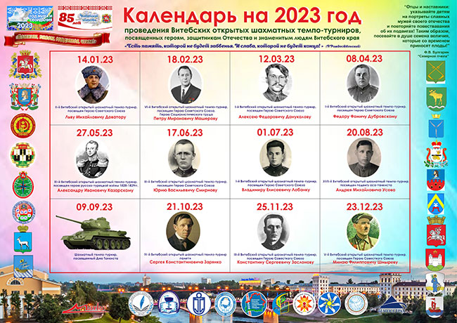 Помнить и чтить достойных земляков, продвигать просвещение - таков девиз всех Витебских шахматных турниров и, он был реализован и в этот раз! Большой интерес у участников турнира и болельщиков вызвали плакат и иллюстрации, посвященные жизни и подвигу Александра Казарского, а также викторина среди школьников и детей. Победителям ее, учащимся г. Витебска: Луковникову Арсению (СШ № 40), Ловец Анастасии (СШ № 29) и Башкову Михаилу (гимназия № 3) вручены дипломы. В ходе турнира его участникам и болельщикам была продемонстрирована фотовыставка об истории Витебских открытых шахматных турниров и матчей, на которой многие могли узнать себя, еще совсем юными. Последний турнир стал 99-м по счету, впереди 100-й, который состоится уже 17.06.23 года и будет посвящен Герою Советского Союза Юрию Васильевичу Смирнову. В ходе турнира состоится обновленная экспозиция об истории Витебских открытых шахматных турниров и матчей, фотовыставка, посвященная Юрию Смирнову, а также будут показаны фрагменты уникальных документальных фильмов о подвиге героя.