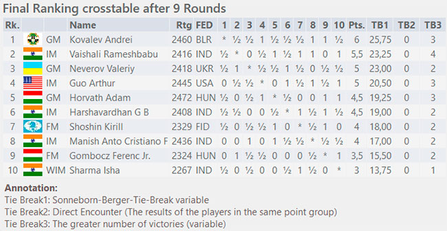 Это представительный круговой турнир с нормой международного гроссмейстера. Не проиграв ни одной партии Андрей Васильевич уверенно занял первую строчку в итоговой таблице. Поздравляем!
