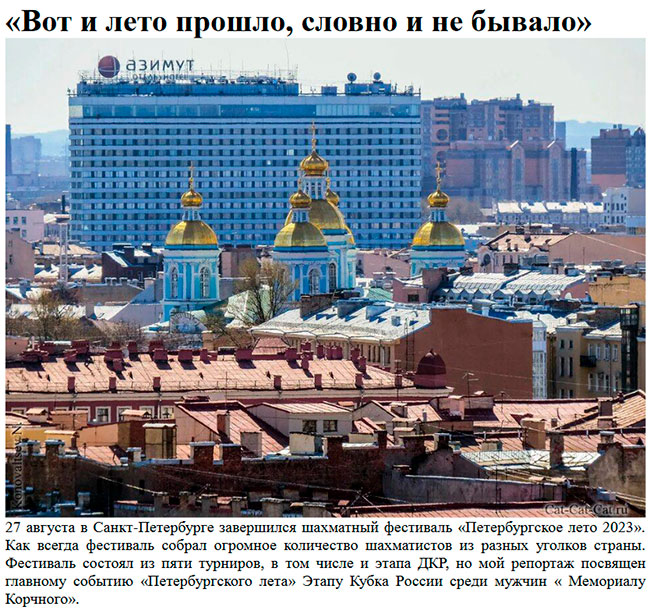 24 августа в Санкт-Петербурге завершился традиционный шахматный турнир памяти замечательного ленинградского гроссмейстера Виктора Корчного. Победу в нем праздновал белорусский шахматист Максим Царук.