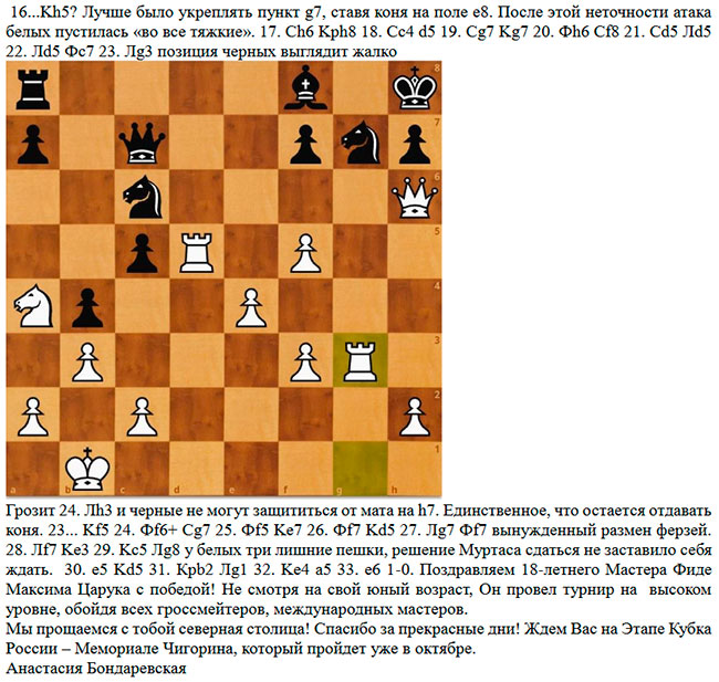 Специально для нашего сайта Анастасия Бондаревская подготовила репортаж с данных соревнований с разбором самых интересных партий.