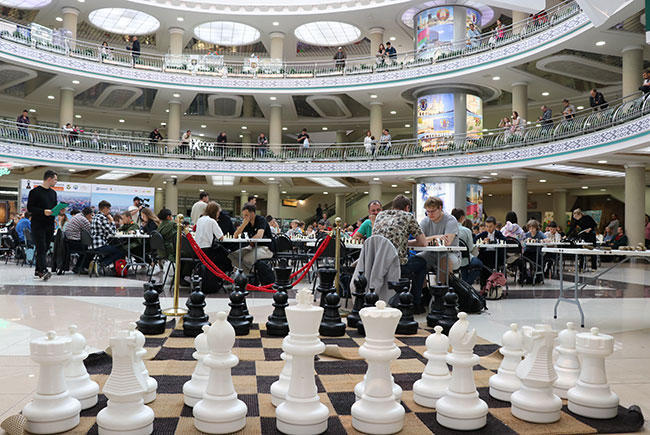 Вот в такой потрясающей атмосфере играют более 120 шахматистов.