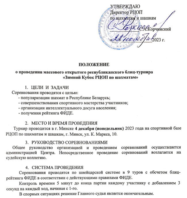 4 декабря (понедельник) окончательная регистрация участников турнира – с 16:30 до 17:15.