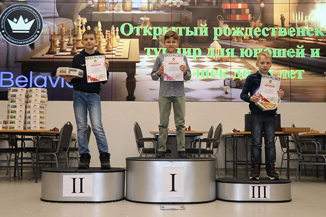 Абсолютно все участники Рождественского турнира получили сладкие подарки от ОО "Белорусская федерация шахмат".