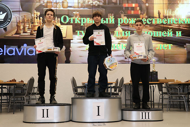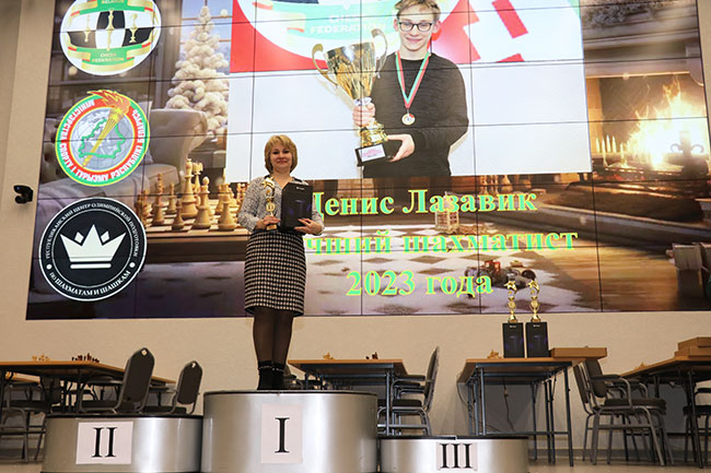Уже стало традицией на Рождественском турнире награждать "лучших из лучших". В этом году лучших в номинациях определяли члены исполкома ОО "Белорусская федерация шахмат". Лучшим шахматистом-2023 года стал Денис Лазавик. Сам Денис в это время играет на чемпионате мира по рапиду и блицу в Узбекистане? поэтому памятную статуэтку получила очаровательная мама Дениса.