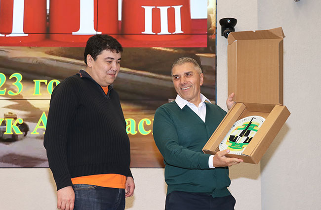Подарок от ОО "БФШ" также получил международный гроссмейстер Александр Рустемов.