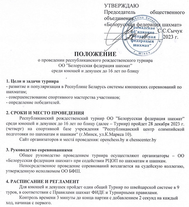 Республиканский рождественский турнир ОО «БФШ» среди юношей и девушек до 16 лет по блицу.