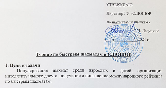 Турнир состоится 7 апреля по адресу: г. Минск, ул. Раковская, 24, СДЮШОР по шахматам и шашкам. Начало 1-го тура в 12.00. Регистрация с уплатой турнирного взноса с 11.15 до 11.50.