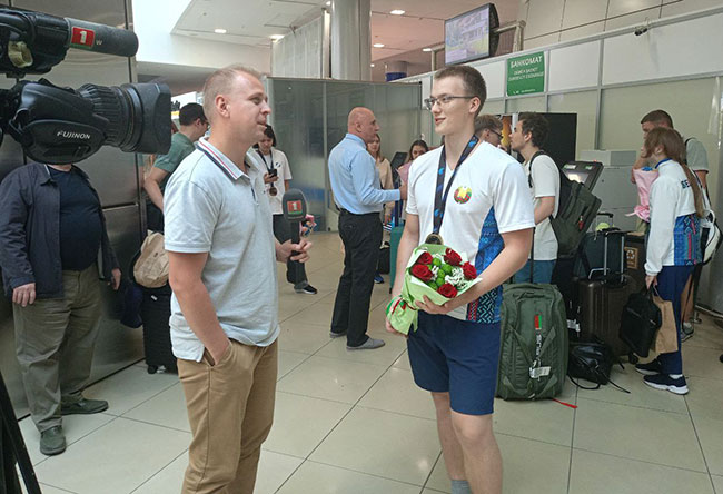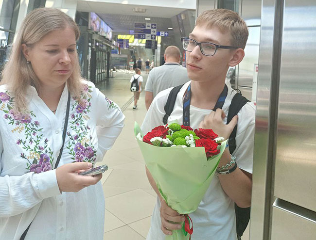 А это уже фото наших замечательных юниоров и юниоров в минском аэропорту. Стильные букеты всем участникам чемпионатов мира от ОО "БФШ".