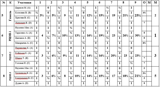 Турнир В: Шкред Т., Цыганов А., Блохин К., Степанов М.