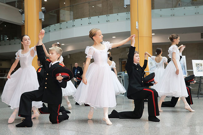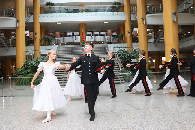 Ярких красок к открытию добавили юные танцоры Белорусской государственной хореографической гимназии-колледжа с великолепным танцем "На балу у суворовцев".