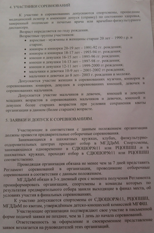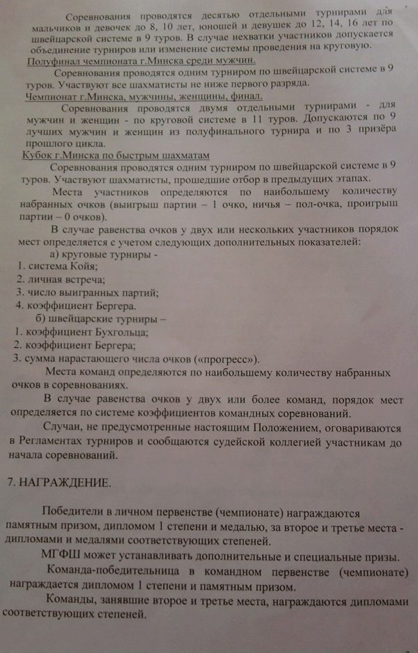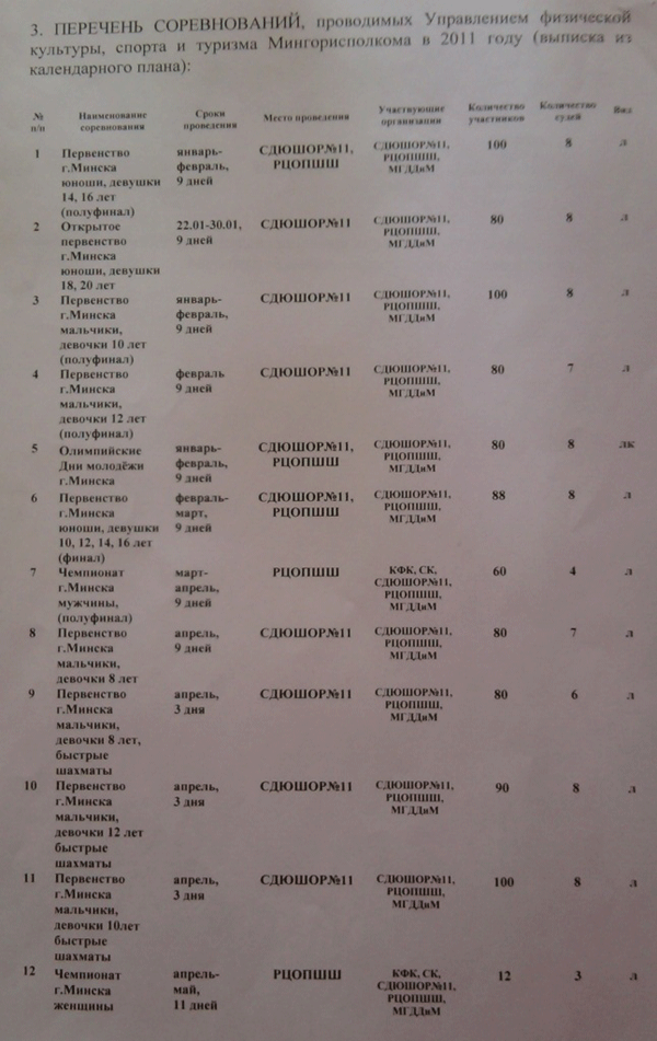 Календарь и положения минских соревнований по шахматам на 2011 год