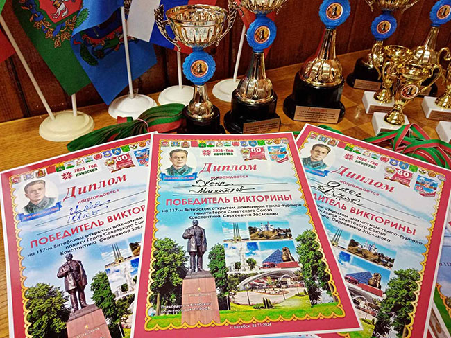 23 ноября года состоялся 117-й Витебский открытый лично-командный шахматный темпо-турнир, посвященный Герою Советского Союза Константину Сергеевичу Заслонову.