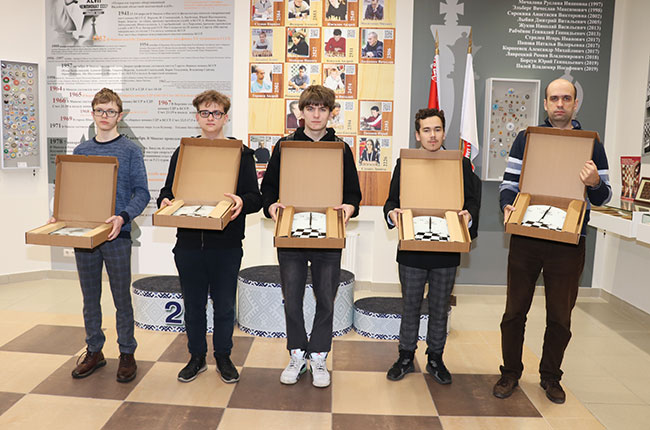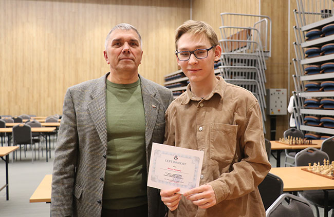 Свой денежный сертификат от ОО "БФШ" получил Денис Лазавик за победу в чемпионате мира среди юниоров по блицу, который проходил в августе в Узбекистане. Остальные наши юниоры-чемпионы Александра Тарасенко и Максим Царук получили свои награды 20 декабря на Зимнем Кубке БФШ.