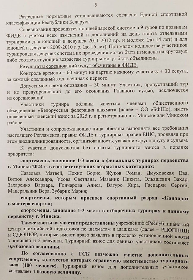 Положение о республиканских соревнованиях по шахматам на 2025 год