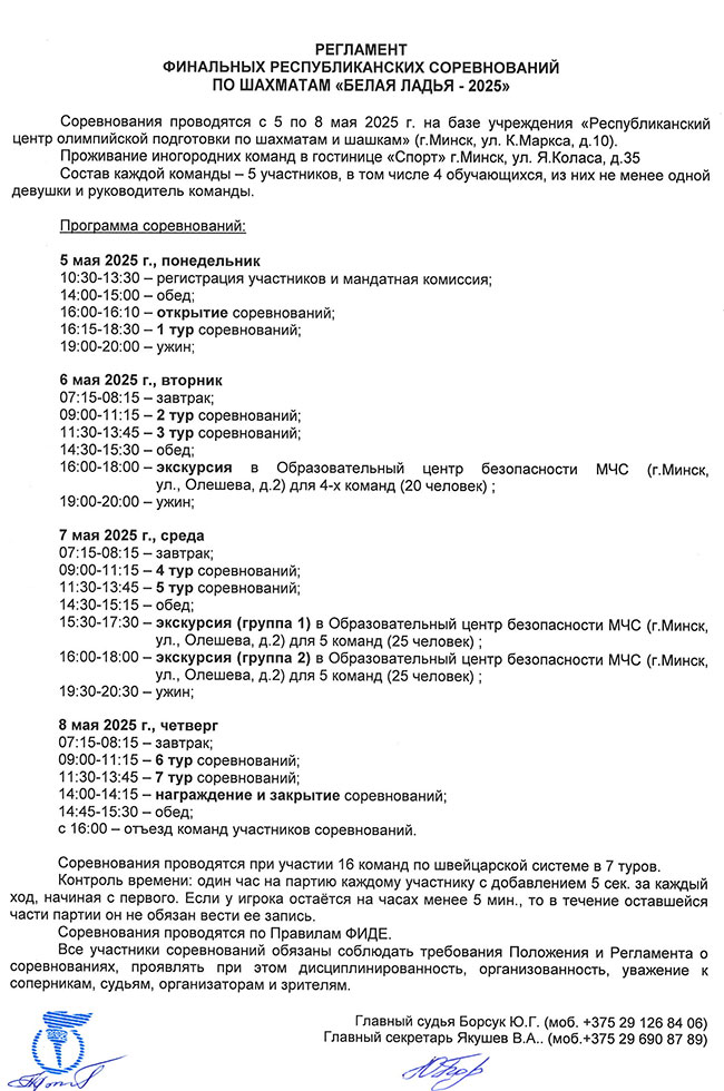 5 мая стартовал финальный этап ежегодных республиканских соревнований по шахматам «Белая ладья», который традиционно проходит в Минске на базе Республиканского центра олимпийской подготовки по шахматам и шашкам.
