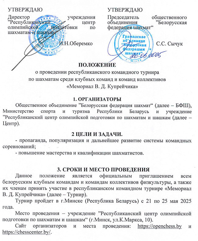 5.6. Заявки на участие с копией оплаты турнирного взноса направляются на электронную почту БФШ blr_chess@tut.by до 19 мая 2025 года.