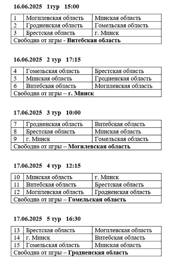 (ул. Якубовского, 18), по круговой системе в 7 туров при участии 7 команд. Состав команды: 6 спортсменов (не менее 2 девушек) 2010 г.р. и моложе