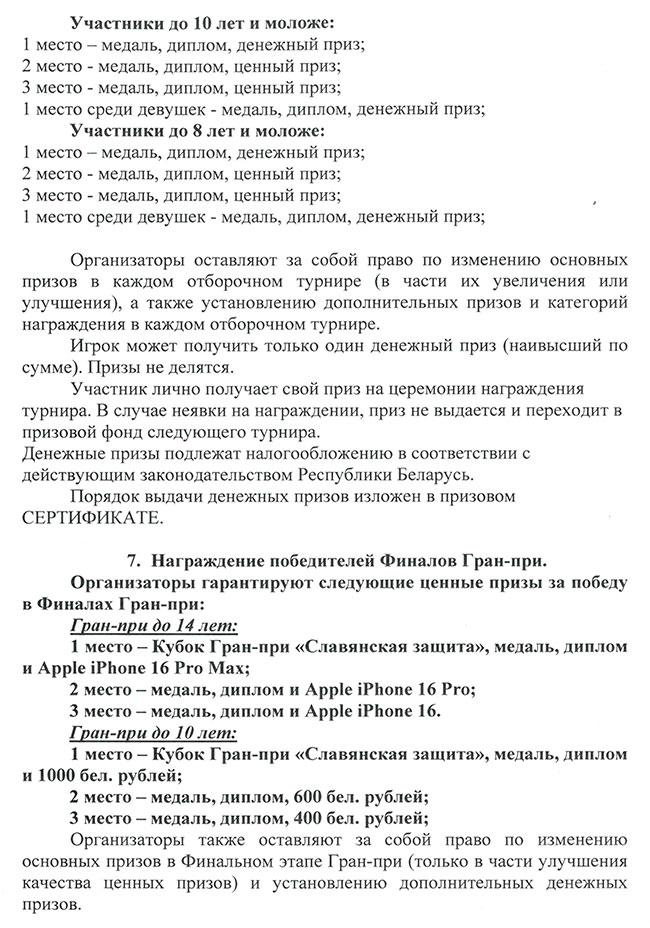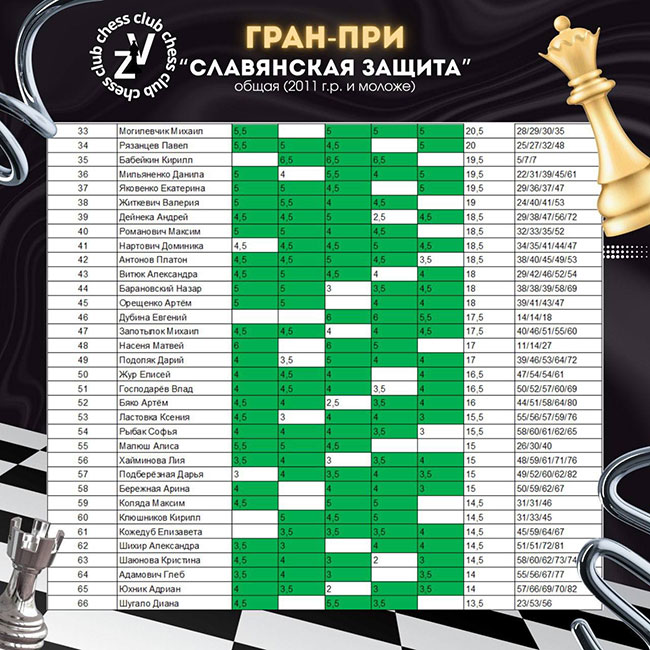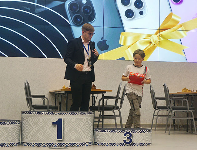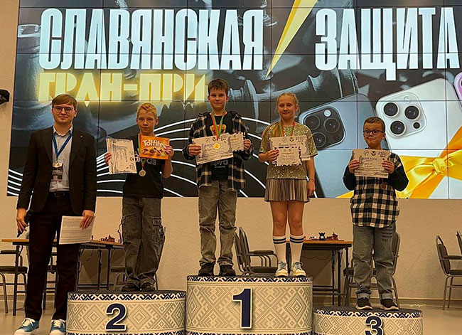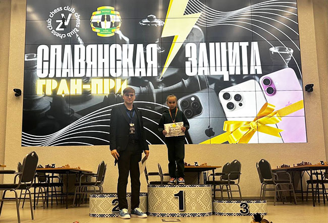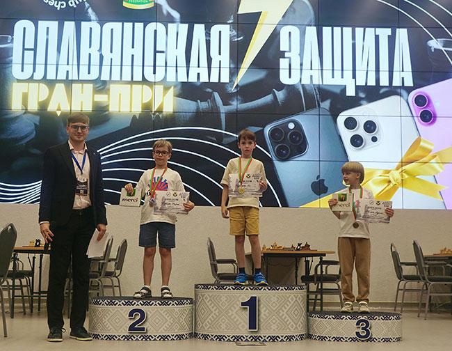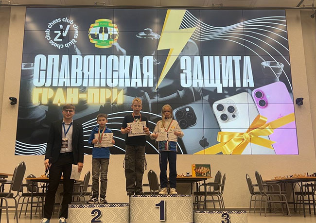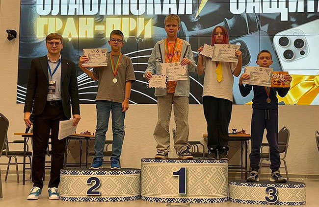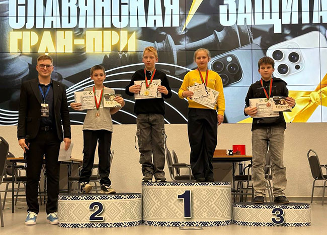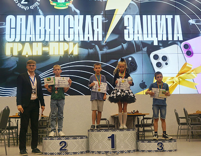 В личной встрече была ничья, очков набрали поровну. И лишь дополнительные показатели вывели на первое место Дамира. Хотя и Никита выступил очень хорошо. Третье место поделило трио участников. И лично я очень рад, что дополнительные показатели оказались лучше у представителя Вилейки Захара Емельянова. Всегда приятно, когда солидные результаты показывают представители регионов. Чуть-чуть до основных призов не хватило юному Савелию Бартошу (2014 г.р.), но и пятое место и приз в категории до 12 лет в такой компании солидный результат. Отмечу и попадания в десятку Владислава Домницкого (2016 г.р.). Острая борьба за призы развернулась среди девушек. В итоге первая тройка набрала одинаковое количество очков. Дополнительные показатели вывели на первое место Машу Романович с призом для девушек до 14 лет. Второе место и приз до 12 лет у Алисы Малюш. Очень обидно за Катрин Яковлеву, занявшей третье место среди девушек, которая отлично играла, и уступила Алисе лишь пол-пункта Бухгольца, для длинного турнира это ничтожно мало. Подтвердили свой фаворитский статус, став победителями в своих категориях Лера Житкевич (девушки до 10 лет) и Ян Брусиненко (юноши до 8 лет). Среди девушек до 8 лет первое место у Яны Вороненко.