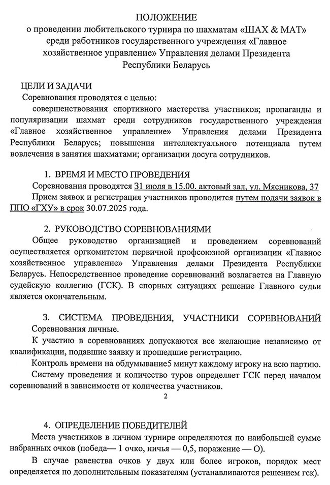 Положение о республиканских соревнованиях по шахматам на 2025 год