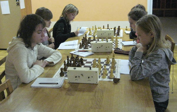 Участвовало 6 человек. Круговая система. 5 туров. Упорной борьбы, к сожалению, не получилось — сразу же выявились явные фаворитки Бейненсон Е. и Ильючик Я. Да, были, у соперниц отличные шансы, порой даже выигранные позиции, но в итоге обе спортсменки подошли к финишу с абсолютными победами и ничьей между собой. В дополнительном блиц — матче победила Катя. 1 Бейненсон Е.(Пинск) 2. ИльючикЯ.(Кобрин) 3. Дубовская Е.(Брест). От Кати мы привыкли ожидать, и ожидаем многого, а вот Яна существенно прибавила и это радует.