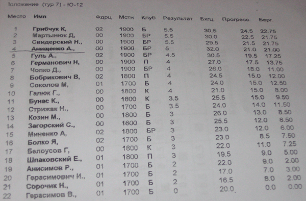 К сожалению, фаворит — Вероника Кузмук не показала всего на что способна, девочка увлекается "троеборьем" шахматы + теннис + плавание, причем во всех видах спорта минимум победительница области (!). Наверное, когда то придется остановить свой выбор на чем-то конкретном
